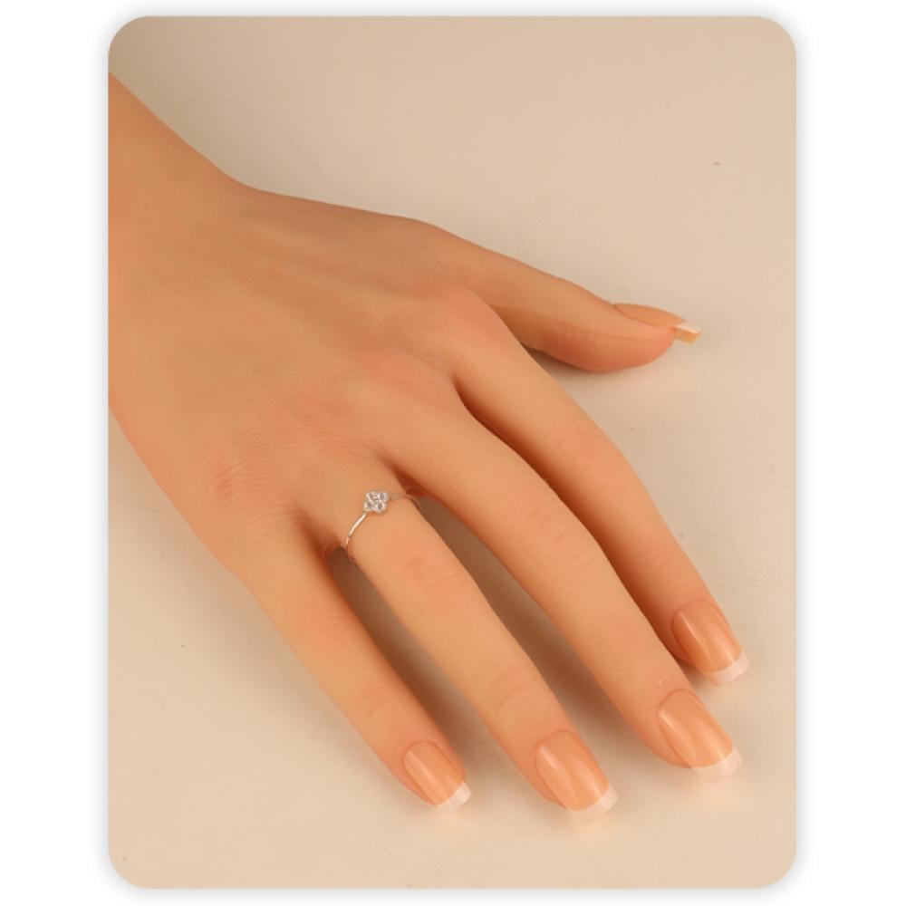 - التصميم: تصميم بسيط وأنيق مزين بزخرفة على شكل زهرة صغيرة مرصعة بأحجار براقة، تمنح الخاتم لمعانًا راقيًا.