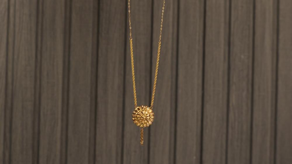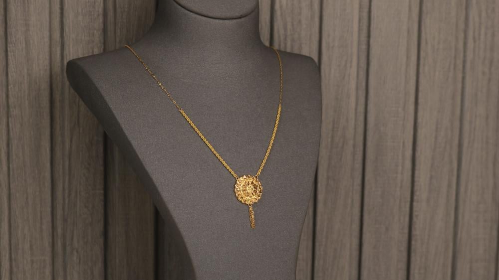• التفاصيل: يأتي بقلادة دائرية مزخرفة، تتصل بسلسلة ذهبية رقيقة.